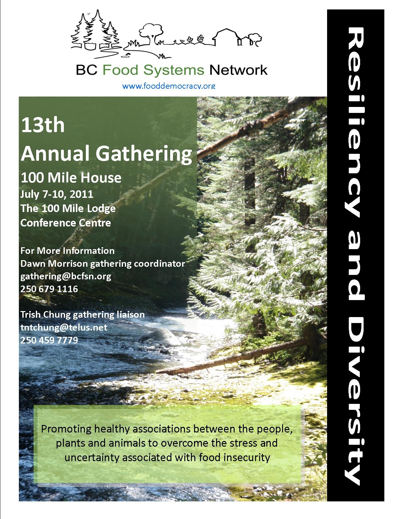 The time for the 13th Annual Gathering of the BC Food Systems Network is fast approaching! The gathering will take place July 7-10, 2011, in the community of 100 Mile House in the central interior region of the province. We are happy to say that the 100 Mile Lodge Conference Centre is offering a gracious venue in a picturesque rural setting.