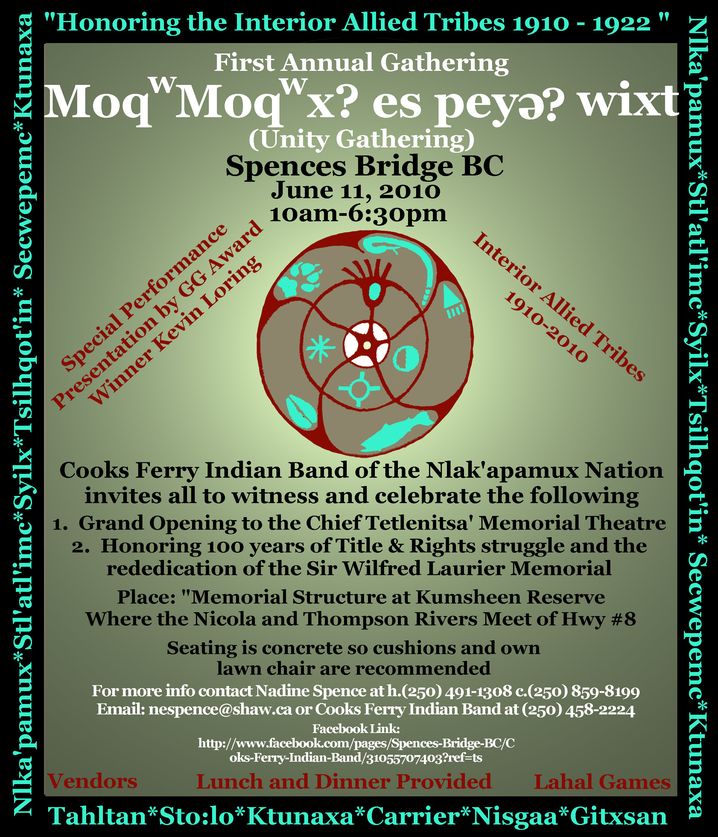 Cooks Ferry Indian Band of the Nlaka'pamux Nation invites all to witness and celebrate the following: